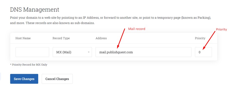 - Address: Mail Server/ MX Entries/ Address value of the record.