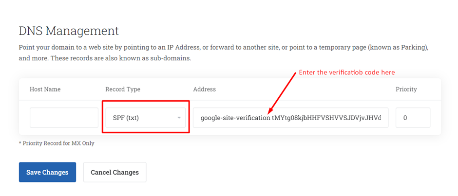 - Value: SPF policy specifying authorized mail servers or any txt value.