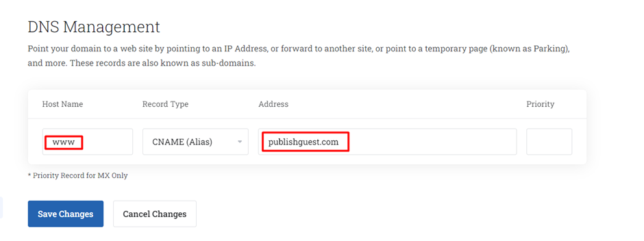 Remember, changes in the DNS Management will only propagate after completing this step.